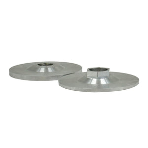 The Mini Insertable Safety Flanges for 6" Mini Airway Buffing Wheels are necessary to mount our 6" Mini Airway Buffing Wheels to your machine. These flanges are approximately 3" in diameter and have a 5/8"-11 thread pattern and are manufactured using high-quality billet aluminum. They are about 3" in diameter and are meant to be used on smaller 5" and 6" variable speed grinders, such as those manufactured by DeWalt, Bosch, and Milwaukee. (NOTE: These flanges and wheels are not to be used with single-speed, high-RPM grinders.)