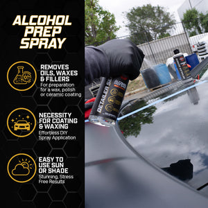 Our alcohol prep spray was engineered to remove residue, oils, surface contaminants, waxes & fillers. This product is also fantastic for prepping your paint in preparation for a wax, polish or ceramic coating.