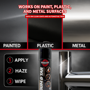 Gum and tar remover is a product that specializes in removing gum, tar, adhesive residue, or other contaminants with similar texture. This product works by dissolving and loosening the particles without causing any damage to the vehicle. Gum and tar remover is time saving as it is very effective at breaking down those stubborn particles, making it much easier to wipe away. It is also gentle enough to where it will preserve the underlying paint or finish of the vehicle.