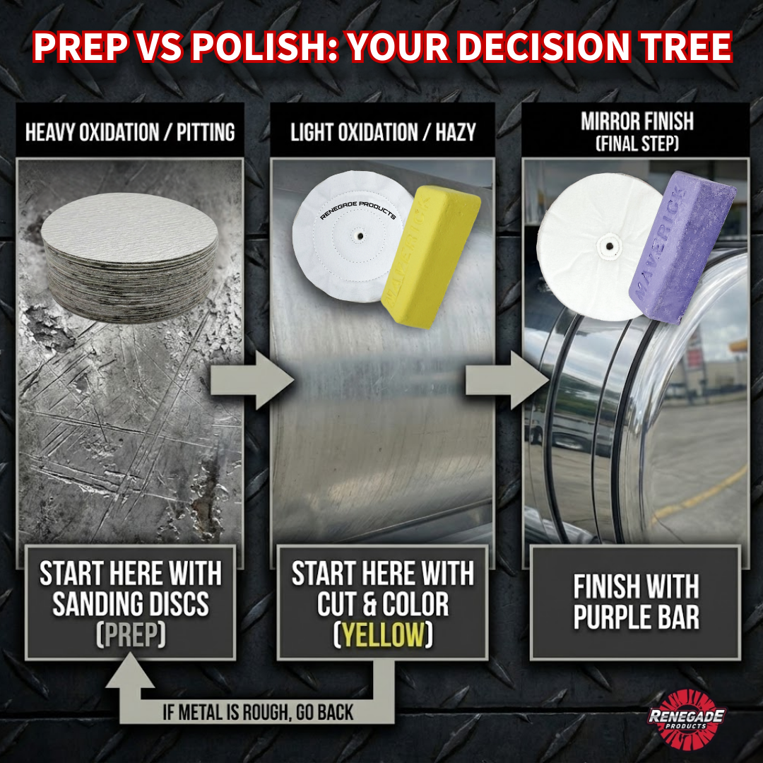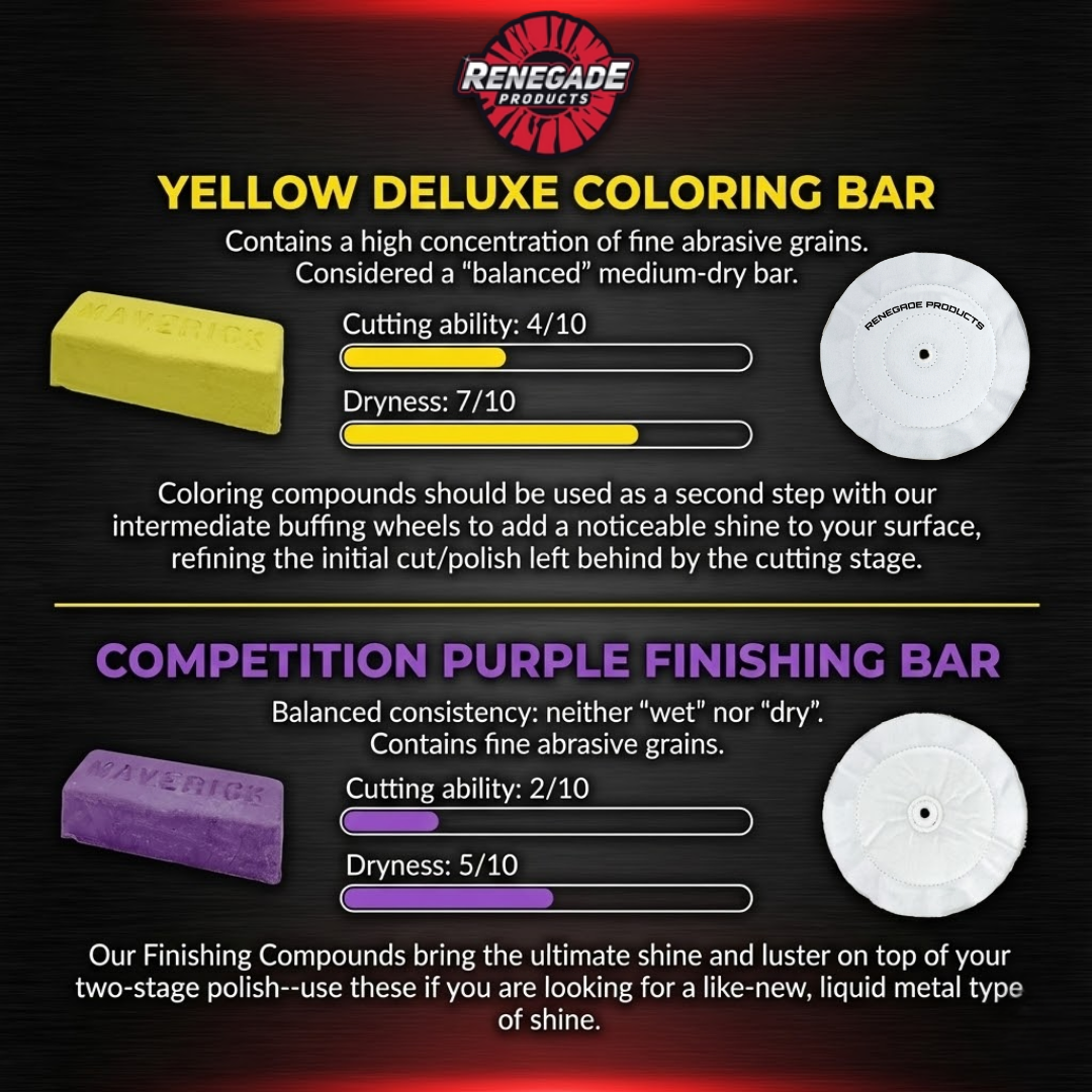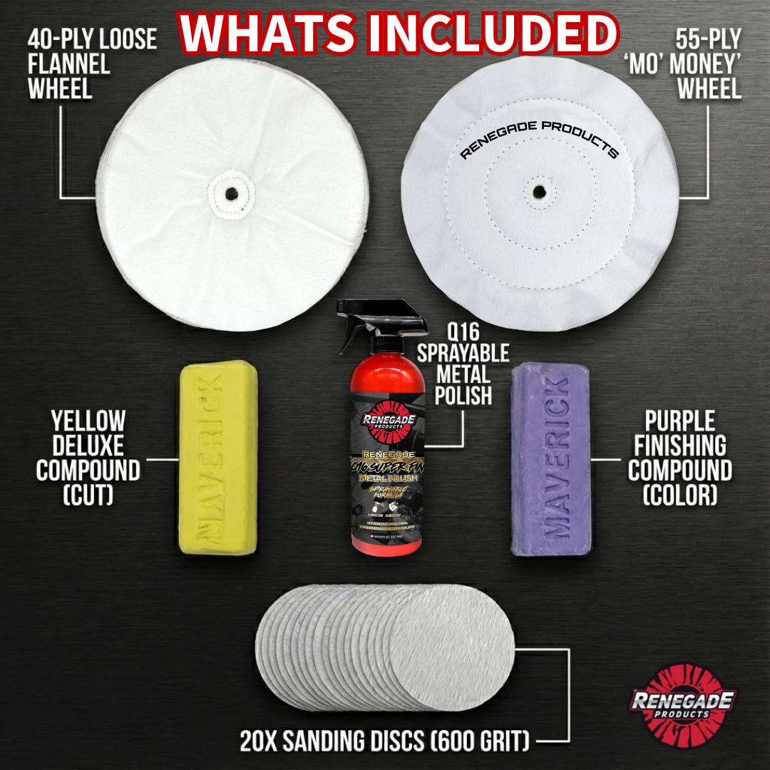 El paquete de pulido East Coast de Renegade combina algunas de nuestras ruedas y compuestos de pulido más nuevos e innovadores para brindar a los usuarios un proceso de pulido completo de 3 pasos que proporciona un brillo y lustre de alto nivel tipo espejo en sus superficies de acero inoxidable.