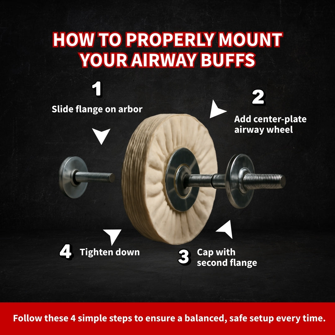 Des brides de sécurité doivent être utilisées lors du polissage et du lustrage à grande vitesse avec nos Roues de polissage pour conduits d'air . Elles sont conçues pour réduire les risques de déformation du plateau central de la roue de polissage. Outre cette protection contre la déformation, les brides de sécurité contribuent également à maintenir la roue de polissage bien en place.