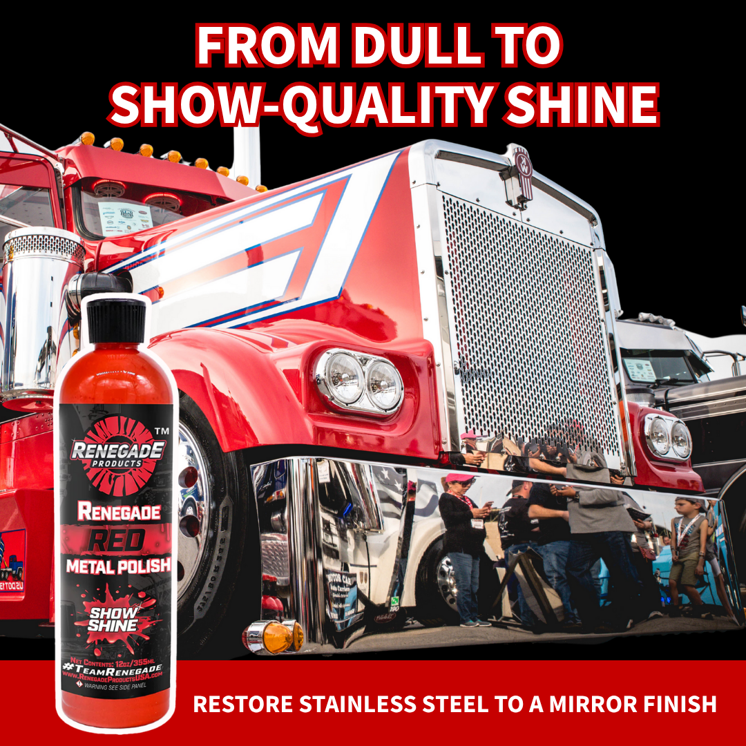 - Un (1) flacon de 355 ml (12 oz) de produit de polissage liquide pour métaux Renegade Red.