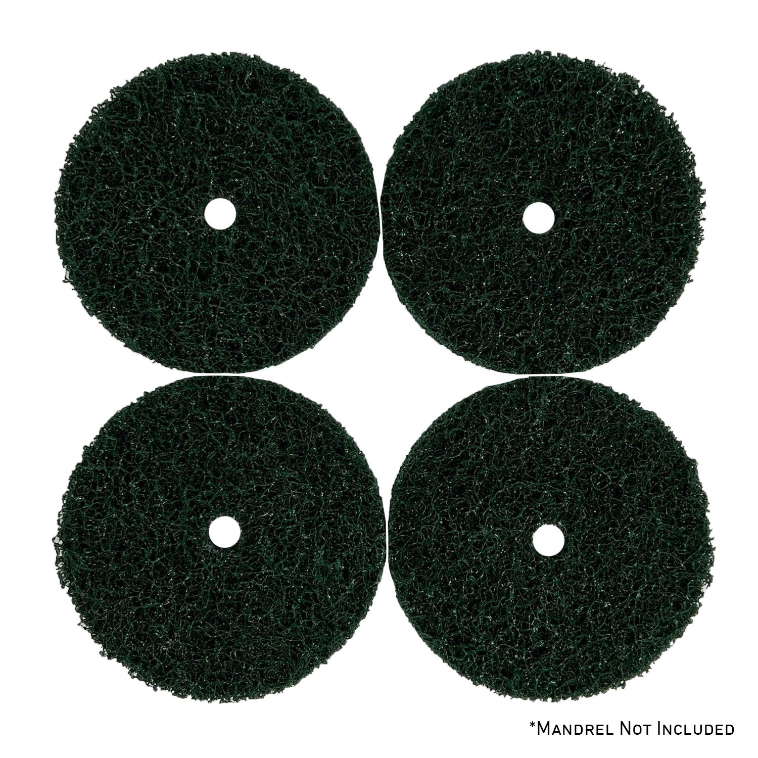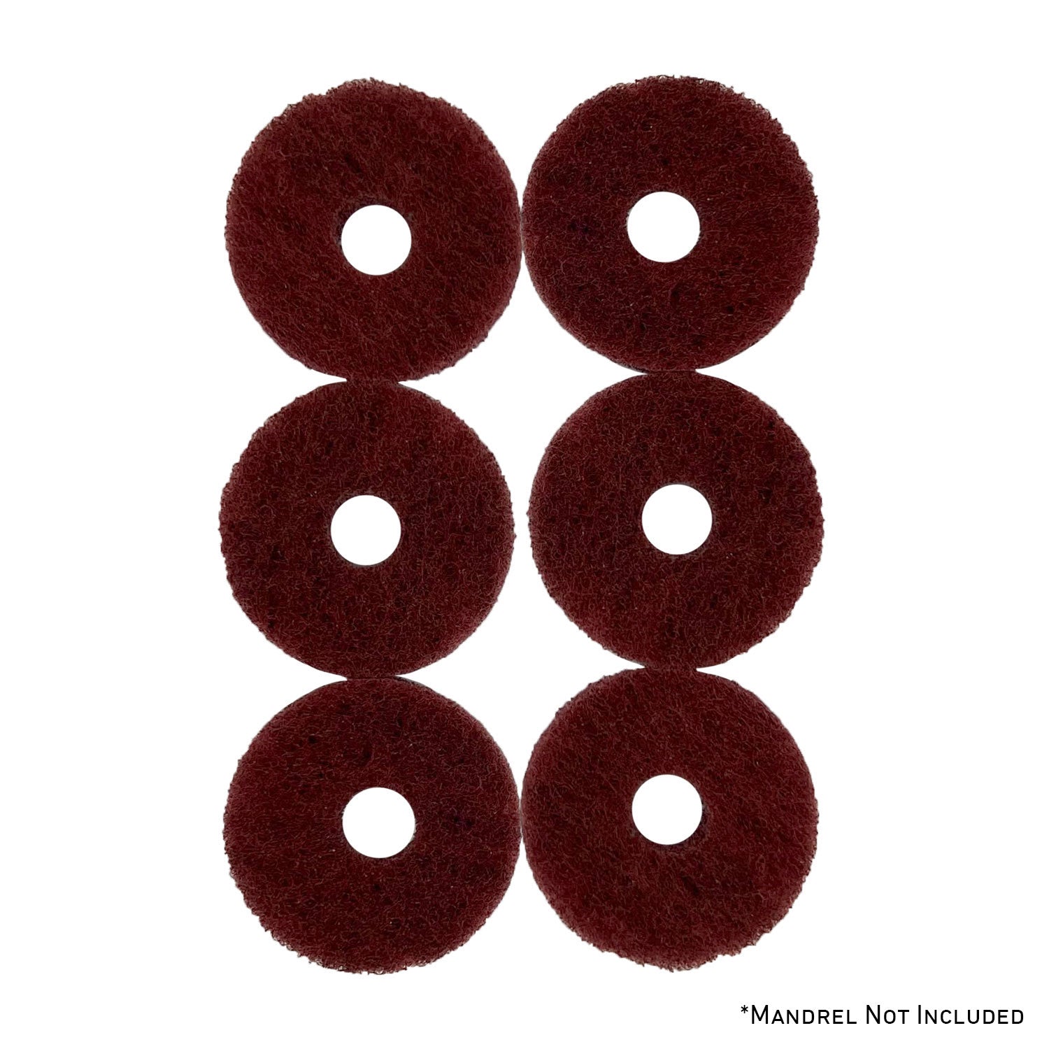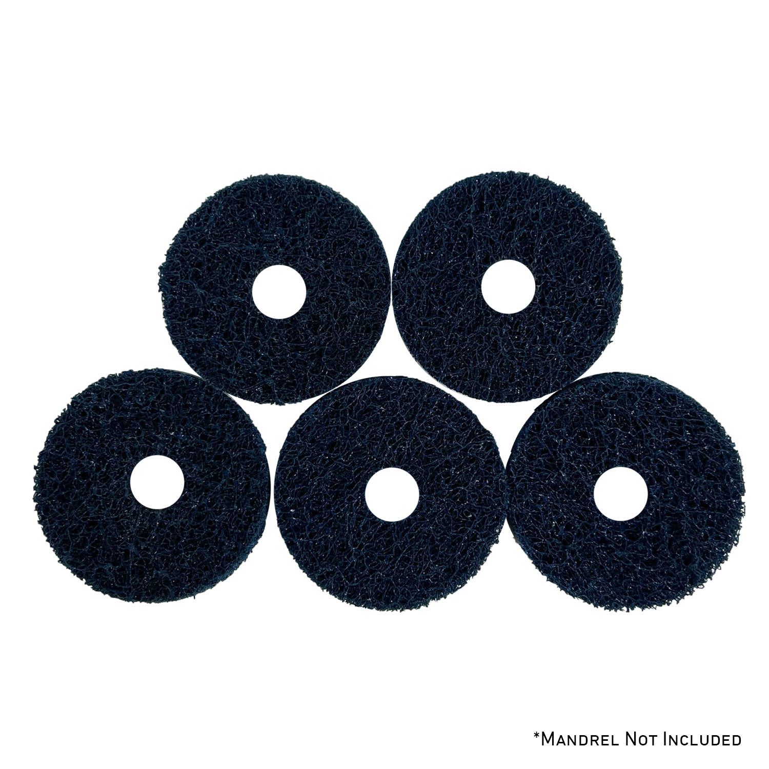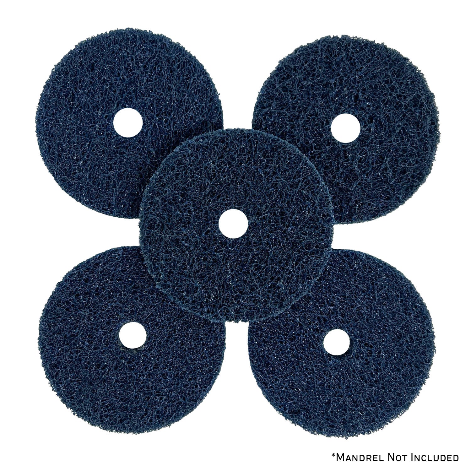• Pack of Mini Surface Prep Buff and Blend Discs with 1/2 arbor hole for drills and grinders, ideal for metal surface cleaning.
