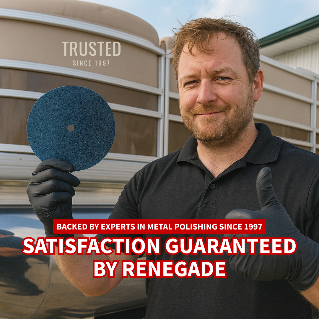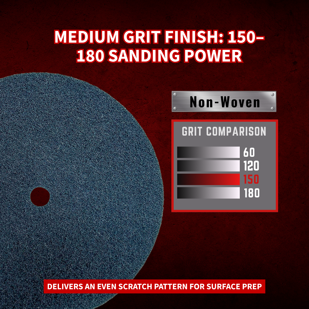 • Renegade surface prep buff and blend discs in coarse, medium, and very fine grades