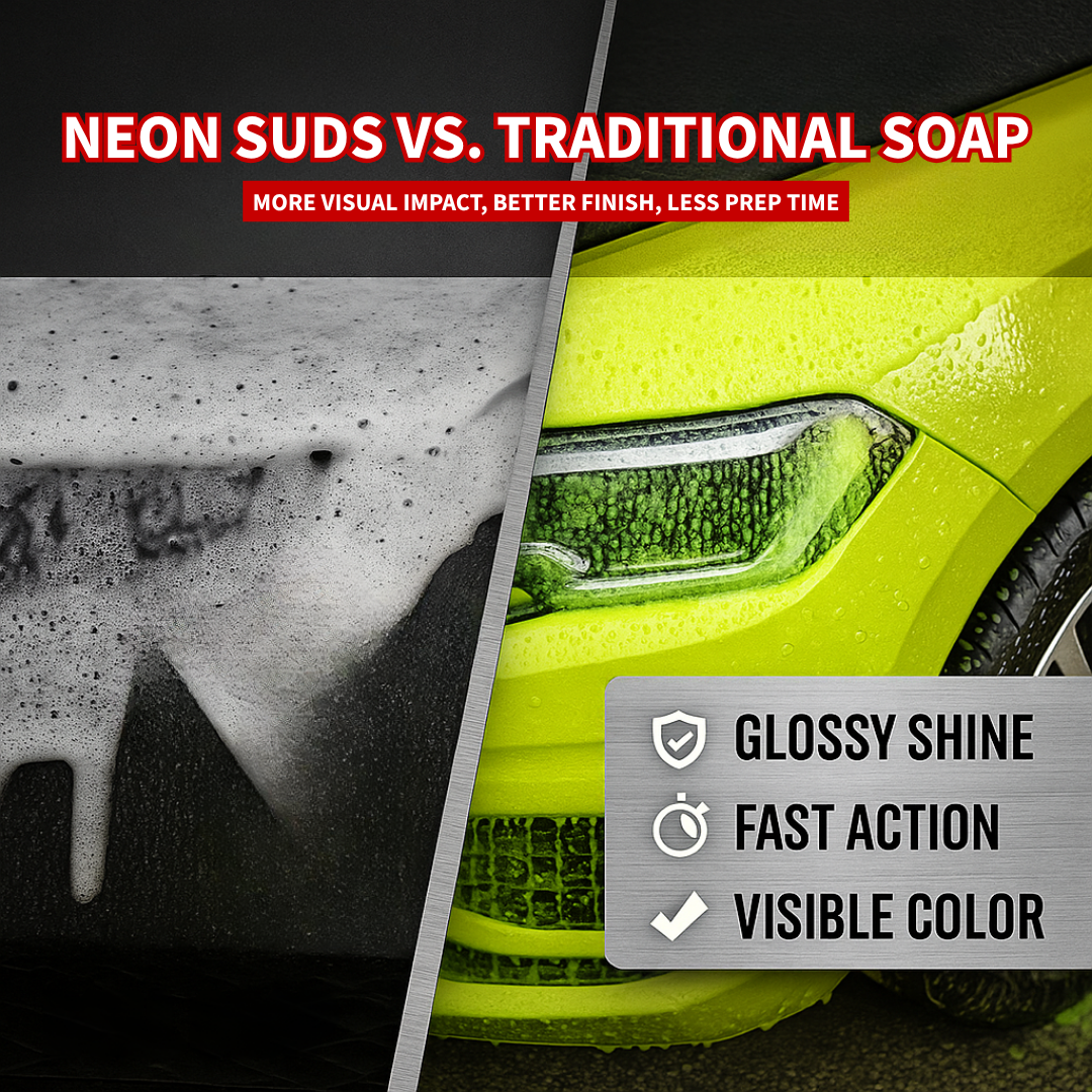 Le shampoing et cire coloré Neon Polish est un produit haut de gamme, ultra-coloré, compatible avec les canons à mousse et les tunnels de lavage. Sa formule à base de cire de carnauba émulsionnée offre une protection légère et une brillance exceptionnelle.